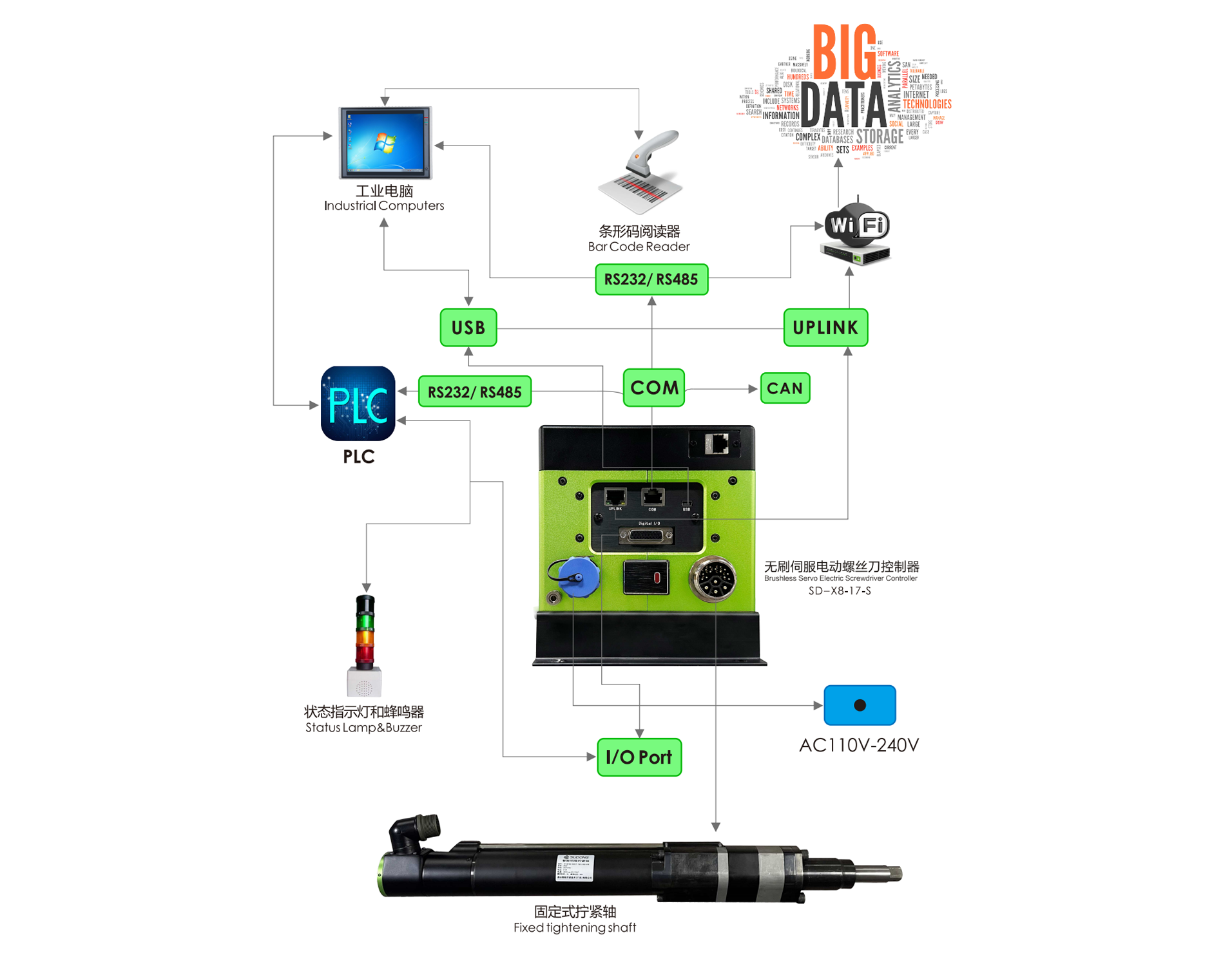 将条码扫描器与控制器连接,确保数据可追溯性,防止操作员可能存在的错误拧紧,可与生产管理系统进行无障碍连接,全面监测生产过程;